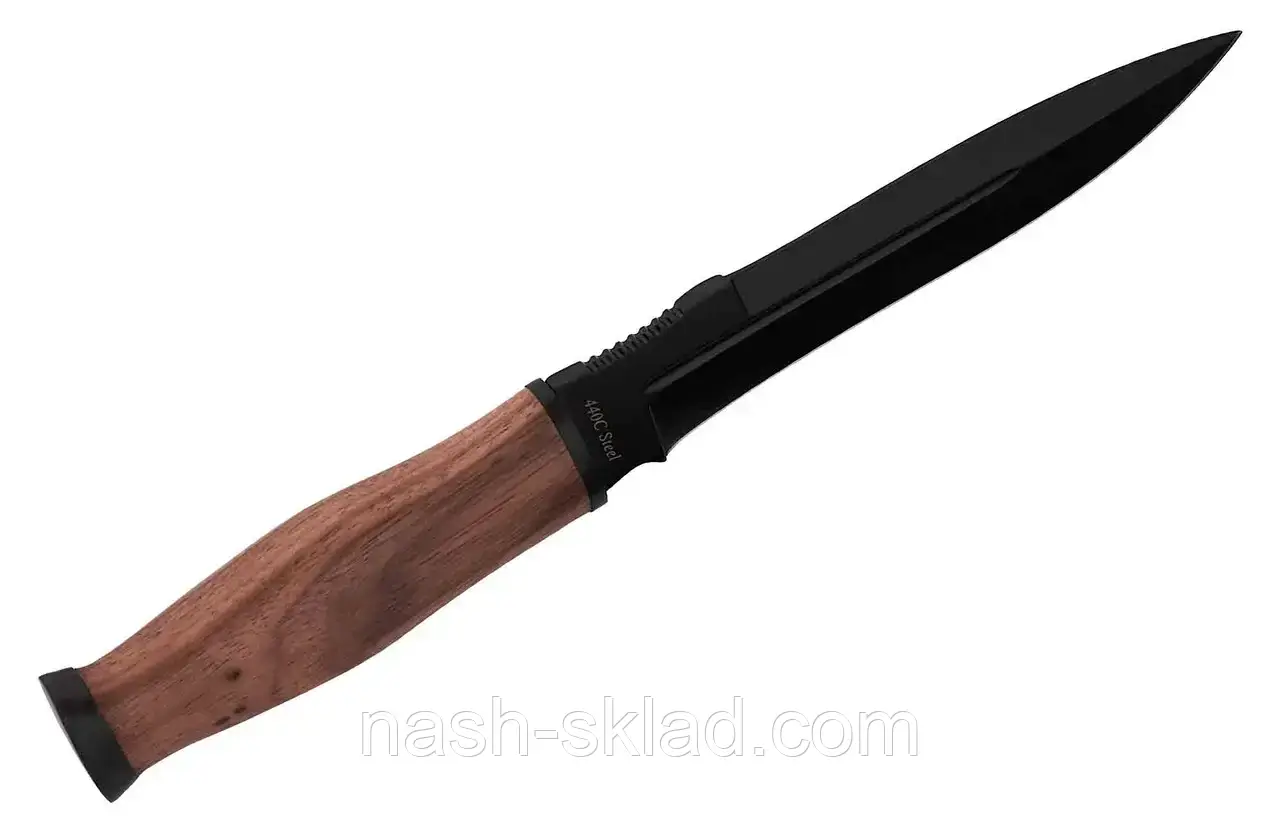 Сталь 440С, з якої виготовлений клинок — це прекрасний вибір для універсального або мисливського ножа, де застосовуються досить товсті різальні крайки. В актив цього матеріалу можна записати високу механічну твердість і міцність, а також корозійну стійкість.